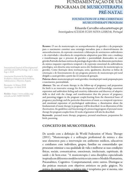 Programa de Musicoterapia pré-natal: saúde, bem-estar e comunicação afetiva entre mãe e bebê por meio de experiências musicais centradas na voz e no corpo.
